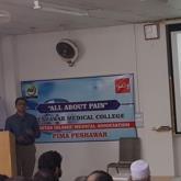 The second program was held at Peshawar Medical College on 14 September 2017. This program was addressed by Prof Muhammad Subhan, Head of department of Medicine PMC; Prof Tehniyat Ishaque, head of department of Obs & Gynea PMC; Dr Mahmood ul Hassan, Head of department of Orthopedics PMC; Dr Mohammad Bin Afsar Jan, Principal Physical Therapy, RMI; and Dr Ibrar Ahmad, Assistant Professor & Consultant Endocrinologist LRH.